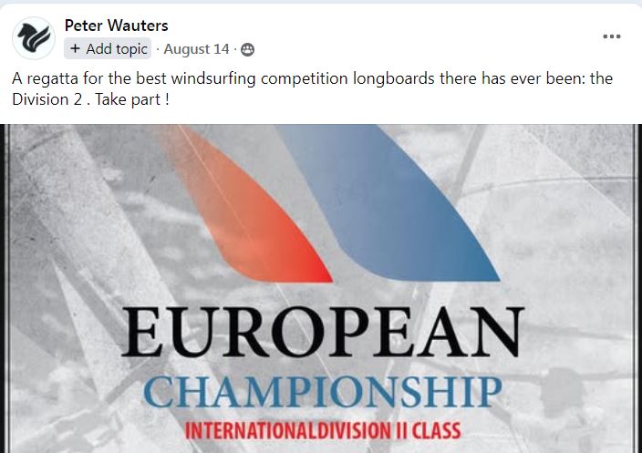 I fully agree with Peter Wauters and John Langvall. I think almost all D2 pilots have experienced in the past that it was not liked to be seen by the raceboarders when you came with the desire to participate in one of their races with a D2 board. Especially at below 8kn wind nobody wanted to see the D2 drive the raceboards away. Logically, no one could explain this to me. Also the exclusion by rules, 380 instead of 390 length, I will never understand. In the past, the raceboards were not so edgy and high but rather flat. The D2 boards with 20cm thickness were excluded. Raceboards today are as thick as D2 boards.I would like for the future now that we are all older and more mature to destroy the boundaries. To do this, the raceboard class would only have to change the length to basically allow D2. Peter Murray joins the RB races in England with his onehundredboardz Davidson and that’s how it could / should be everywhere.For the organization, it is easy to say that, for example, three or five D2 participants have their own rating.Next thing I see is Manko. Currently, the industry and the functionaries determine how our sport develops and everyone follows.Example, the Techno class as the rising class of youth to the raceboards.This one is falling away now because everyone follows the “presumed” foil dream.This is killing, due to the high cost of the foil sets, the youth work in the clubs. Anyway, there are only two clubs left in Germany (Berlin and Chiemsee) that are able (financially and organizational) to successfully perform youth work!This development will probably significantly reduce the raceboard class in the foreseeable future.The idea of the windsurfing class, those who know me know that I was very critical of this class, I now see it as the only solution to maintain windsurfing with athletic goals. The LT as an entry class for club and youth work and at the same time simple and cheap opportunity for surfers to get a taste into competitive sailing and then allow the step into the “longboard class”.The next goal must also be to obtain a more balanced mention in the reporting in the magazines.I get annoyed every time I read a 6-page report in the surf magazine about one of many wave contests where even individual “heats” of two drivers are described in detail. The reports on the Division 2, World and European Championships, the raceboard class and the windsurfer LT only appear in mini reports or as margin notes.Why this is like that I can’t understand nor explain. I only see waveboarders on vacation or in the areas favored with appropriate wind.In conditions like we, as Alain Cadre correctly called, find 90% in everyday life, neither waveboards nor slalomboards make sense. Longboards always ride there and bring joy.I hope that from the idea of some people there will be a great impact that will unite us and our sport again and bring us back to where we came from.Having fun together on the fascination of wind and water